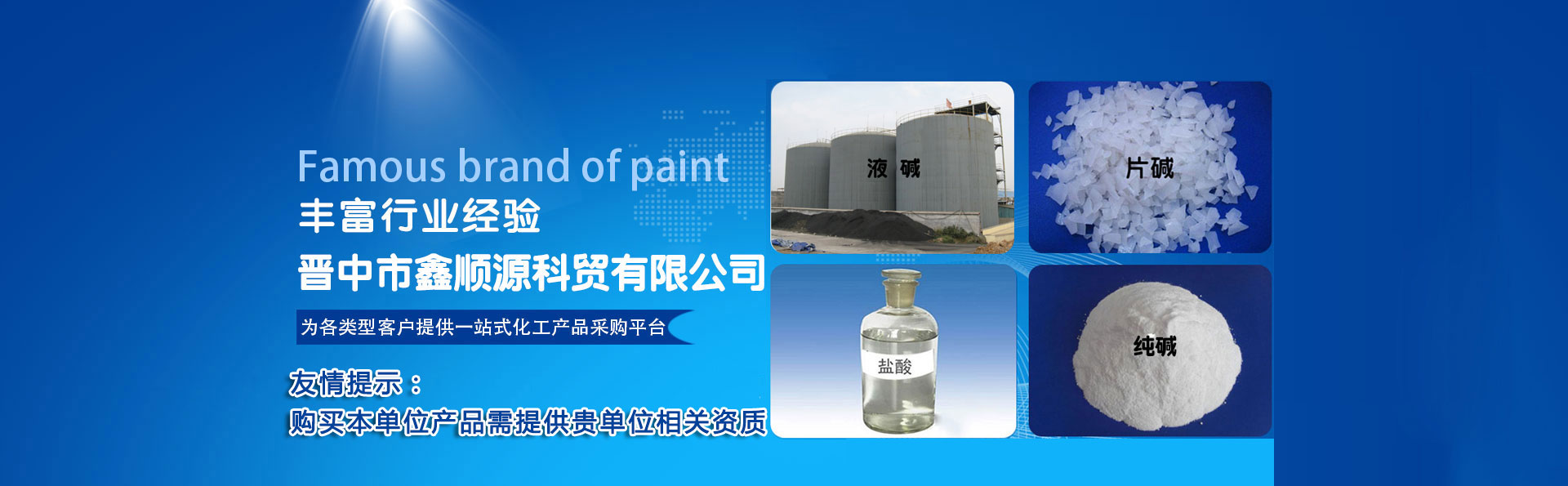 晉中市鑫順源科貿(mào)有限公司成立于2012年9月4日,位于榆社縣東大街大寺路,有安監(jiān)局頒發(fā)的中華人民共和國(guó)危險(xiǎn)化學(xué)品經(jīng)營(yíng)許可證和非藥品類(lèi)易制毒化學(xué)品經(jīng)營(yíng)備案證明,主要經(jīng)營(yíng)鹽酸、次氯酸鈉、液堿 、 片堿  、純堿 、  硫酸 、 聚合氯化鋁、 氯化鈣、氯化鋇、氯乙酸、氨水、水處理劑等危險(xiǎn)化學(xué)品的銷(xiāo)售及運(yùn)輸......